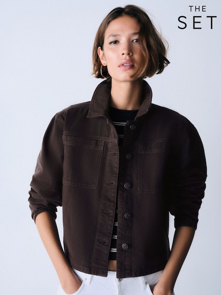 The Set 2 Pack Cropped Denim Shacket Chocolate Brown/Cream