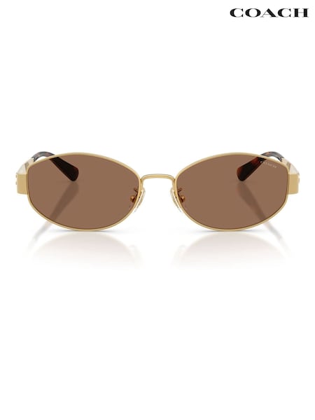 COACH Gold Tone Signature C Double Drop Stud Earrings