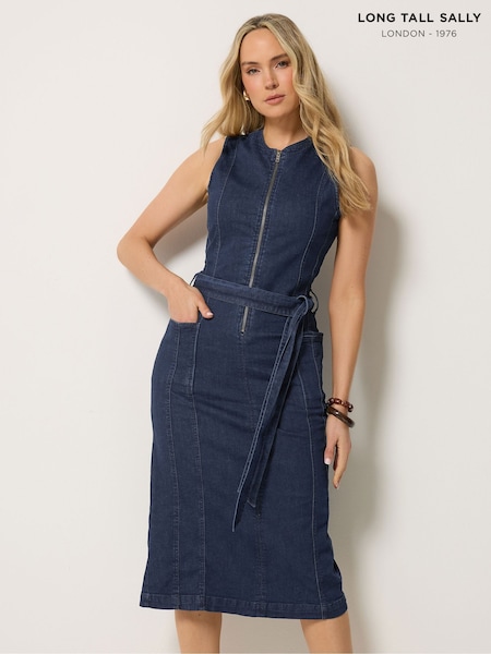 Long Tall Sally Blue Denim Zip Thru Midi Dress