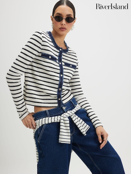 River Island White Stripe Denim Hybrid Cardigan