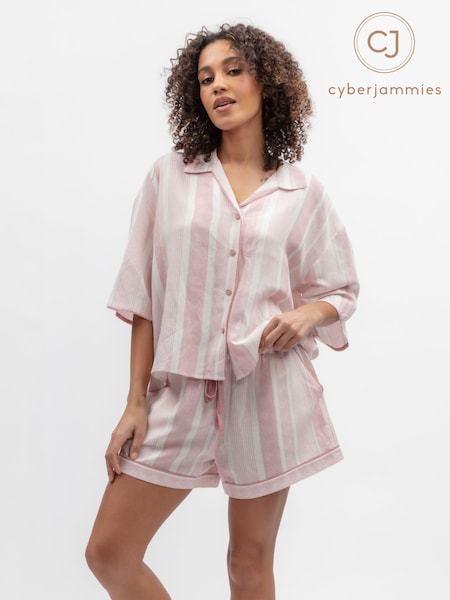 Cyberjammies Pink Linen Printed Stripe Relaxed Shorty Set