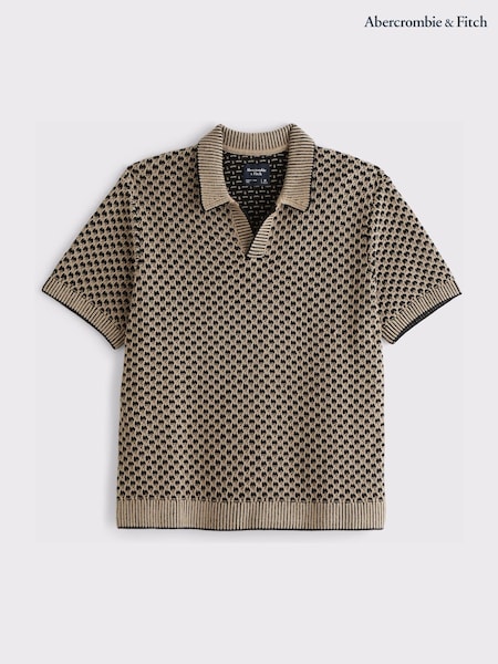 Hnědá - Abercrombie & Fitch Svetrová polokošile s krátkým rukávem