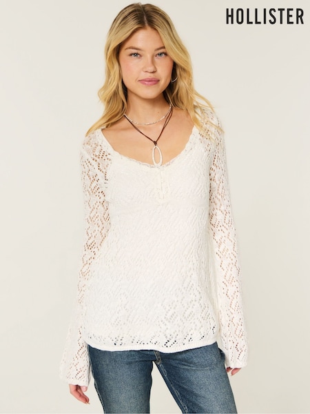Přírodní - Svetr Hollister s otevřeným prošíváním a výstřihem do V