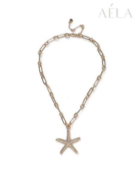 Aela Gold Tone Starfish Pendant Chain Necklace