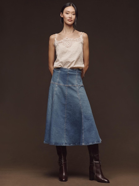 Anthropologie Maeve Denim Blå Maxinederdel med Talje