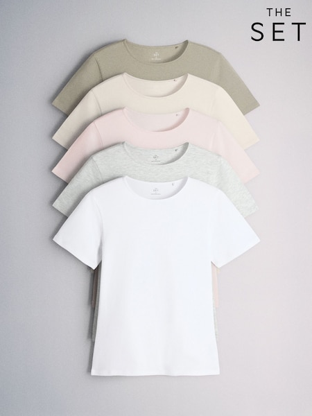 Hvid/Lyserød/Grå Mergel/Neutral - The Set 5 Pack Kortærmet Fitted Rund hals T-shirt