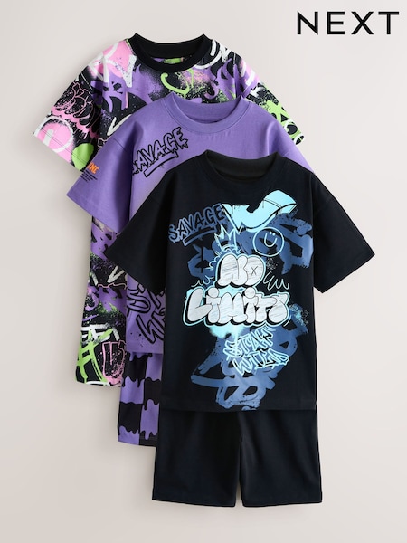 Black/Purple Grafiti Short Pyjamas 3 Pack (4-16yrs)