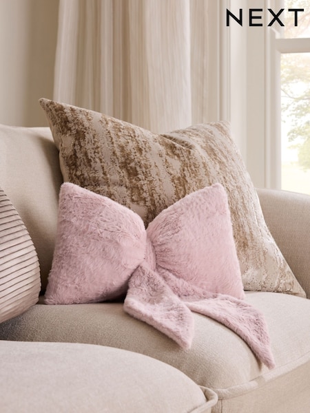Just Pink 3D Faux Fur Bow Cushion