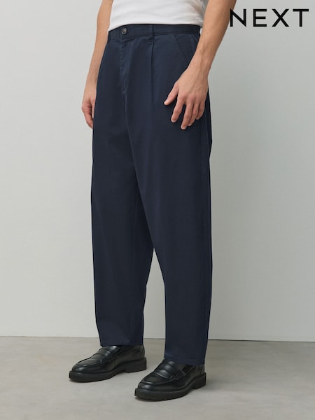 Navy Barrel Fit Cotton Rich Stretch Chinos