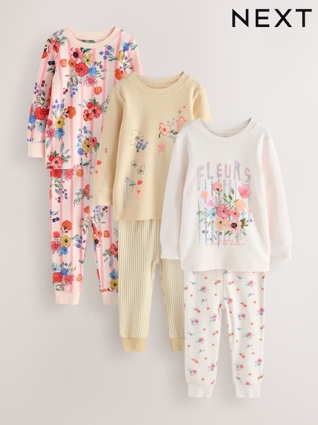 Rose/jaune à fleurs - Lot de 3 pyjamas douillets (9 mois-12 ans)