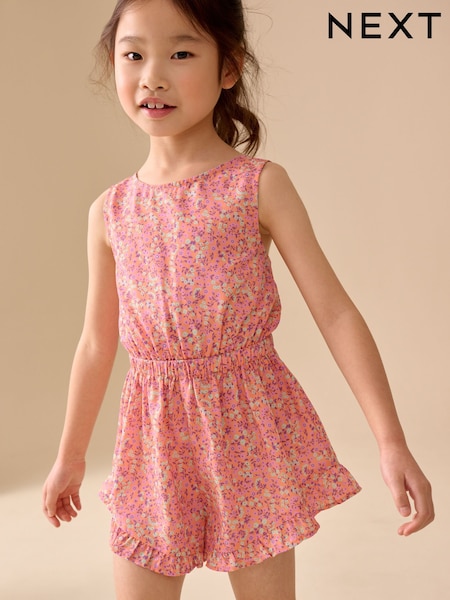 Rose Ditsy - Combinaison à dos ouvert et ourlet à volants (3-16ans)