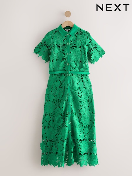 Vert - Short Sleeve Midi Lace Occasion Shirt Dress