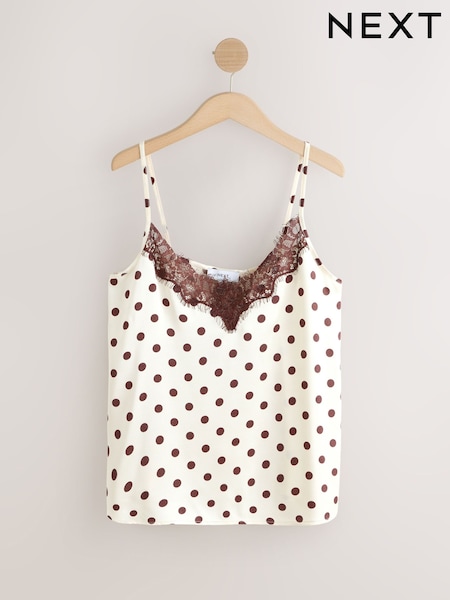 Crème/marron chocolat à pois - Caraco à bord dentelle