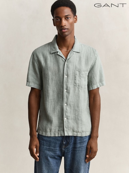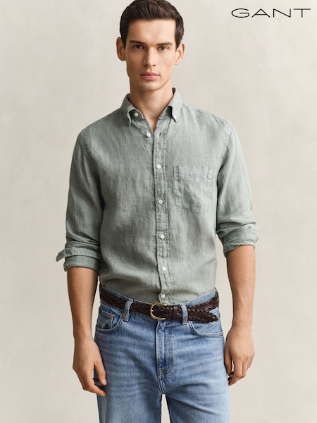 أخضر - GANT Garment Dyed Linen Pocket Shirt