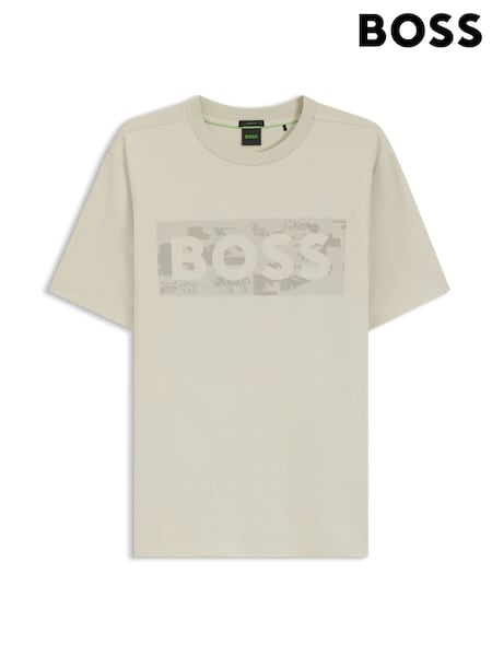 كريم - تيشِرت بتلبيس قياسي وتصميم جرافيكي من BOSS