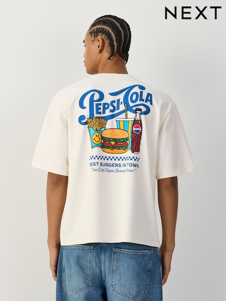 أبيض - تيشرت واسع بطبعة غرافيك Pepsi