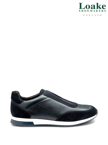 Loake Blue Grain Leather / Suede Combo Elastic Trainers
