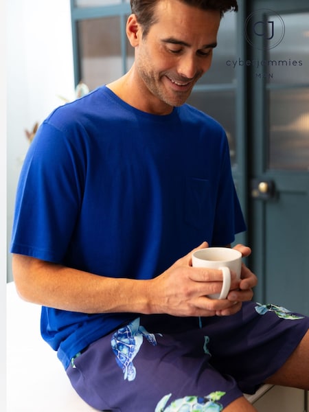 طقم بيجامة من تيشِرت جيرسيه سادة وشورت مطبوع للرجال من Cyberjammies