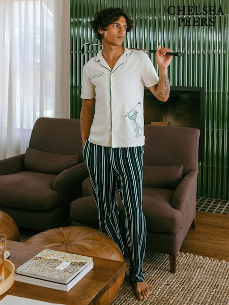 Chelsea Peers Embroidered Leisure Club Print Long Pyjamas Set