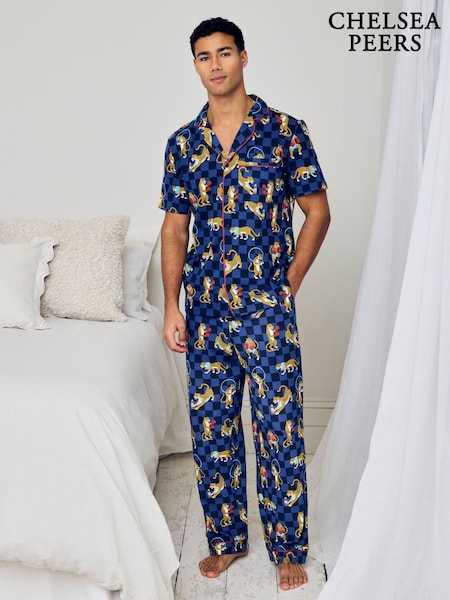 Chelsea Peers Boxing Leopards Print Long Pyjamas Set