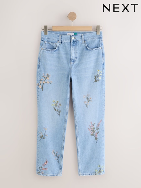 Mid Blue Floral Print Embroidery - جينز City بقصّة مستقيمة وخصر عالٍ Authentic
