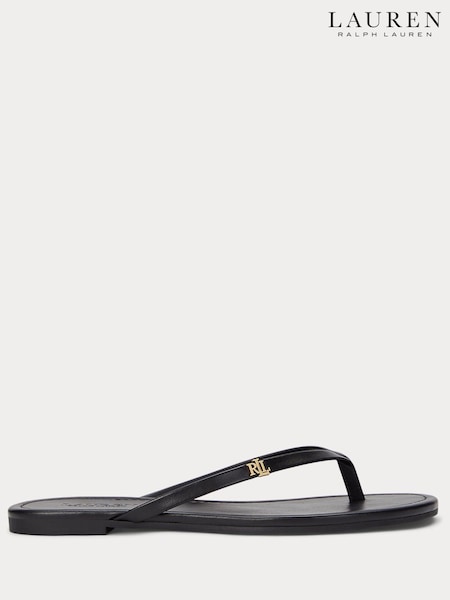 أسود - Lauren Ralph Lauren Everley Calfskin Slide Sandals