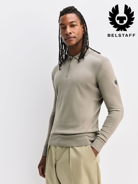Belstaff Natural Kyle Long Sleeve Zip Polo Shirt