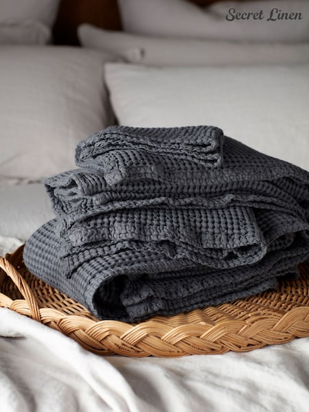 Secret Linen Store Graphite Grey Waffle Towel