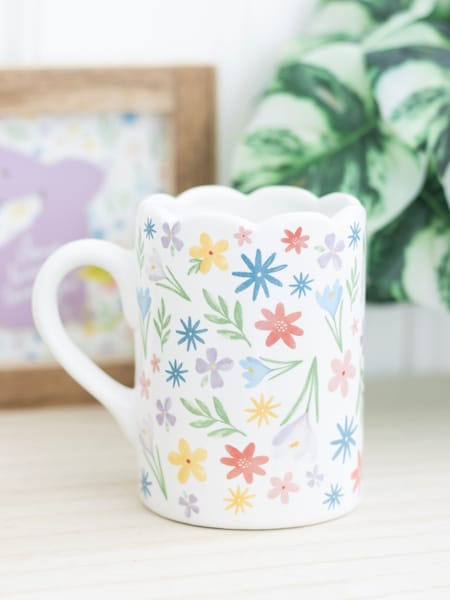 Something Different White Spring Floral Print Scalloped Mug
