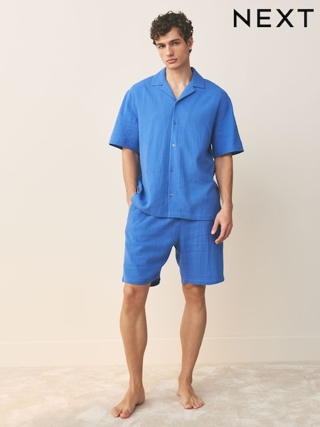 Blue Cheesecloth Shirt and Shorts Set