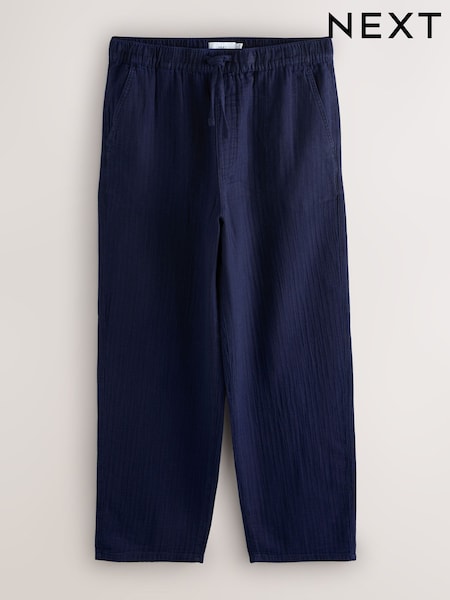 Indigo Blue Striped Baggy Fit 100% Cotton Trousers With Elasticated Waist