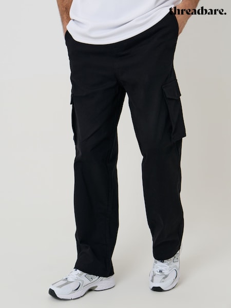 Threadbare Black Baggy Fit Stretch Cotton Cargo Trousers