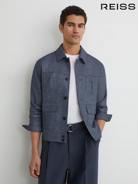 Reiss Airforce Blue Lagos Woven Four-Pocket Jacket