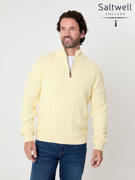 Saltwell Yellow Cable Knit Quarter Zip Jumper