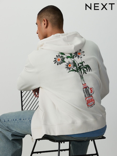 Ecru White Pepsi Graphic Zip Through Hoodie