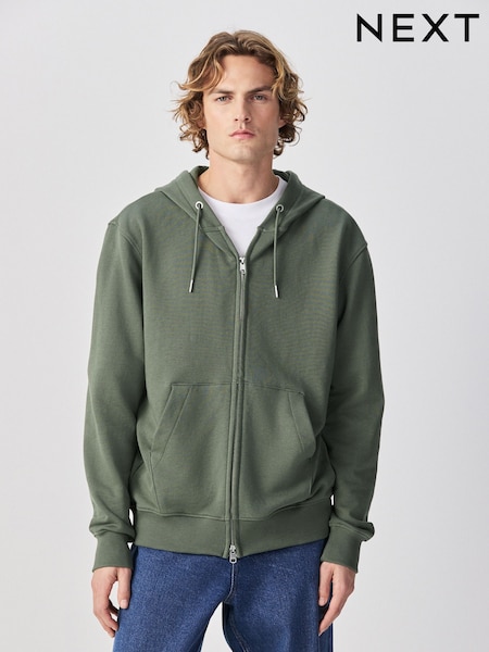 Khaki Green Cotton Rich Lightweight Jersey Zip Through Hoodie