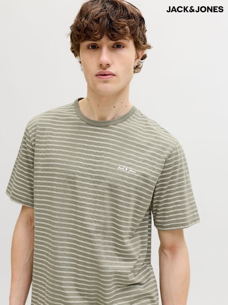JACK & JONES Green Relaxed Fit Stripe T-Shirt