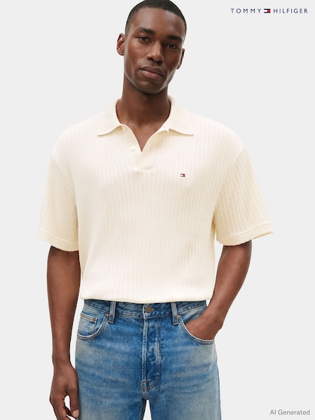 Tommy Hilfiger Natural Relaxed Fit Open Knit Polo Shirt