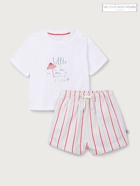 The White Company White Cotton Blend Little Beach Club T-Shirt & Shorts Set