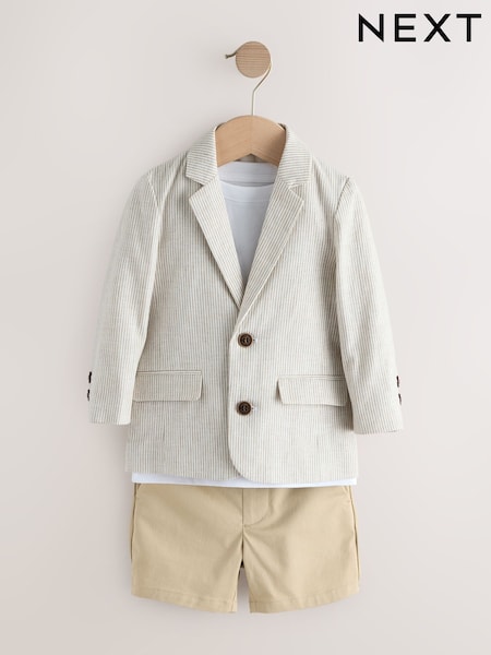 Neutral Stripe Linen Blend Blazer T-Shirt & Shorts Set (3mths-9yrs)