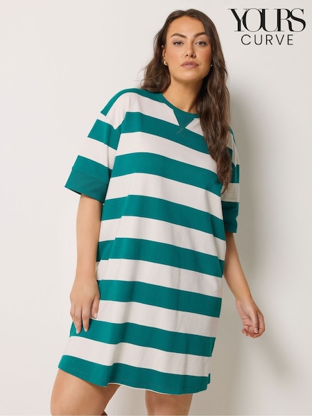 Yours Curve Teal Blue Stripe T-Shirt Dress