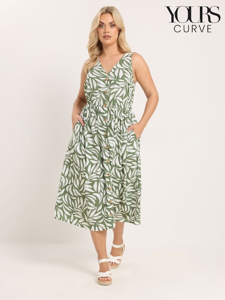 Yours Curve Green Leaf Print Sundress