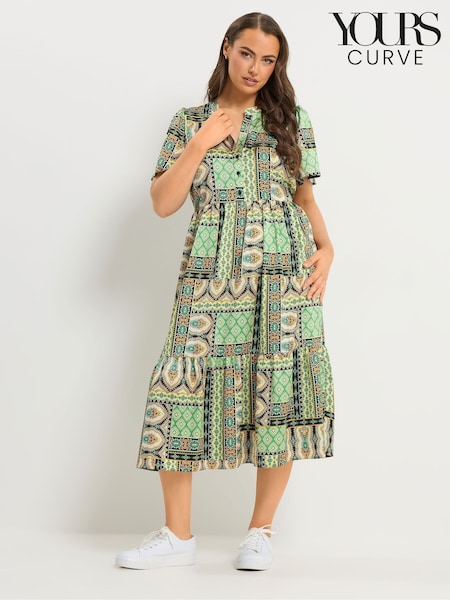 Yours Curve Red London Floral Gathered Square Neck Dress