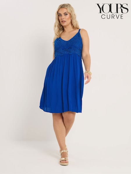Yours Curve Blue Crochet Crinkle Mini Dress