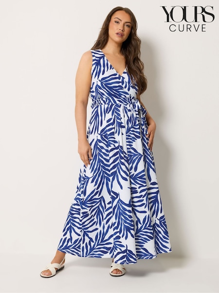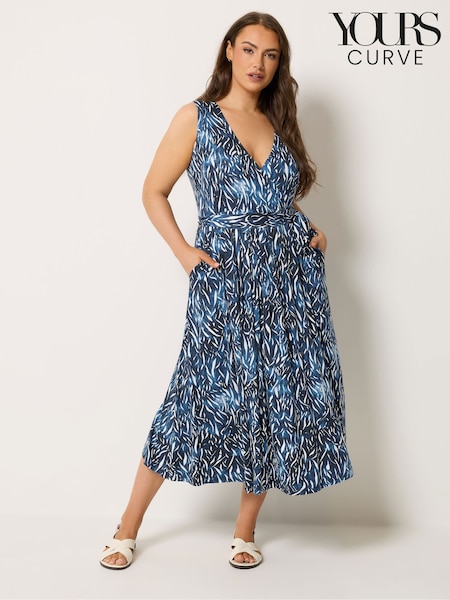 Yours Curve Blue Sleeveless Wrap Front Dress