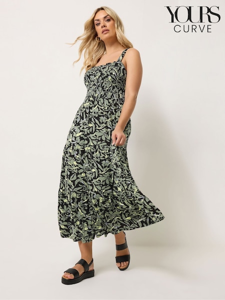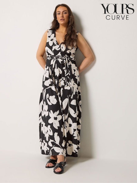 Yours Curve Black Ditsy Floral Pintuck Maxi Dress