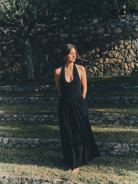 The Set 2 Pack Halter Neck Jersey Maxi Dresses Black/Neutral