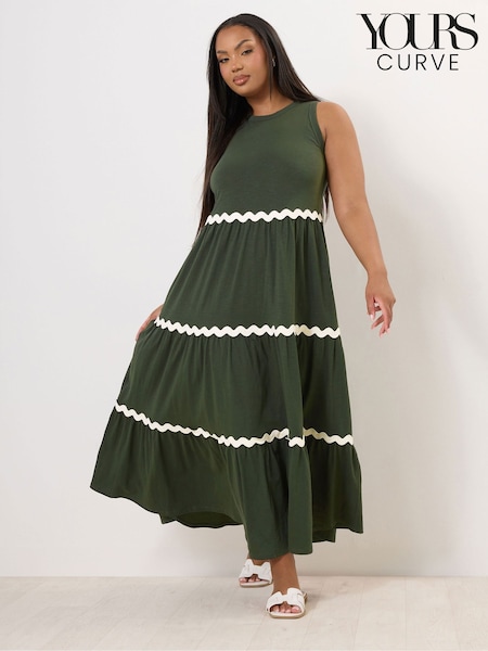 Yours Curve Green Contrast Swirl Tiered Maxi Dress