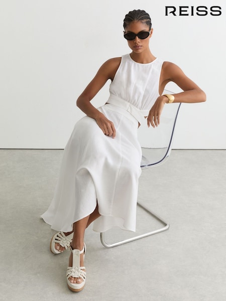 Reiss White Frances Leather Plaited-Strap Wedge Sandals