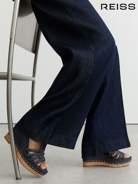 Reiss Blue Frances Denim Plaited-Strap Wedge Sandals